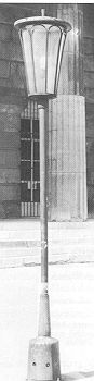 Diese Tatsache kann bei der Diskussion um den künftigen Laternentyp nicht unberücksichtigt bleiben. Praktische Überlegungen sprechen vielleicht für ein jüngeres Erzeugnis (Kommunale Kandelaber in Originalausführung oder in der Version für Starklicht Abb. 29, 31) wobei bei den beiden letztgenannten etwaige Vorschaltgeräte leicht unter dem Dach untergebracht werden können.
