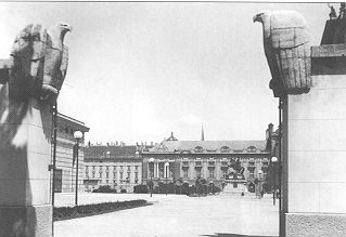 In den Jahren 1933-1934 wurde das äussere Burgtor zu Ehren der Gefallenen des Ersten Weltkrieges zu einem Heldendenkmal ausgestattet. In diese Zeit dürfte auch die Neuaufstellung von Kugelleuchten in dessen unmittelbarer Nähe fallen (Abb. 34). Die analoge Beleuchtungsumrüstung im Inneren Burghof und im Vorfeld des Burgtheaters ist vermutlich gleichzeitig vorgenommen worden.